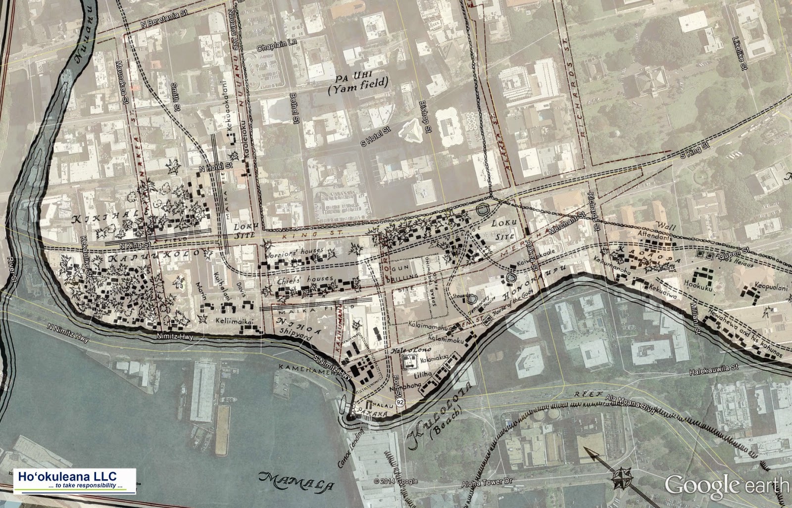 I was invited to participate in "Park(ing) Day" art event at Arts At Marks Garage on Friday Sept 15. The earliest map of Honolulu I know of is from 1810. On that map is a sweet potato field that was used to supply the ships which were becoming a common sight in Honolulu. Arts at Marks is built on the corner of that field. In that year Kaumualiʻi and Kamehameha established peace and unified the islands.